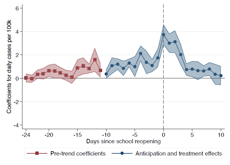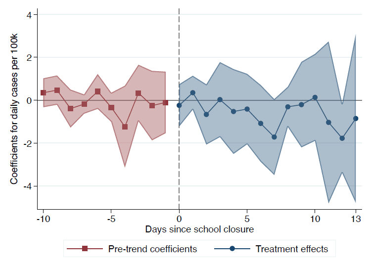 But to guide policy, it is important to zoom out from the anecdotal or small sample evidence and identify the causal effect of school closures and re-openings on aggregate infections.
